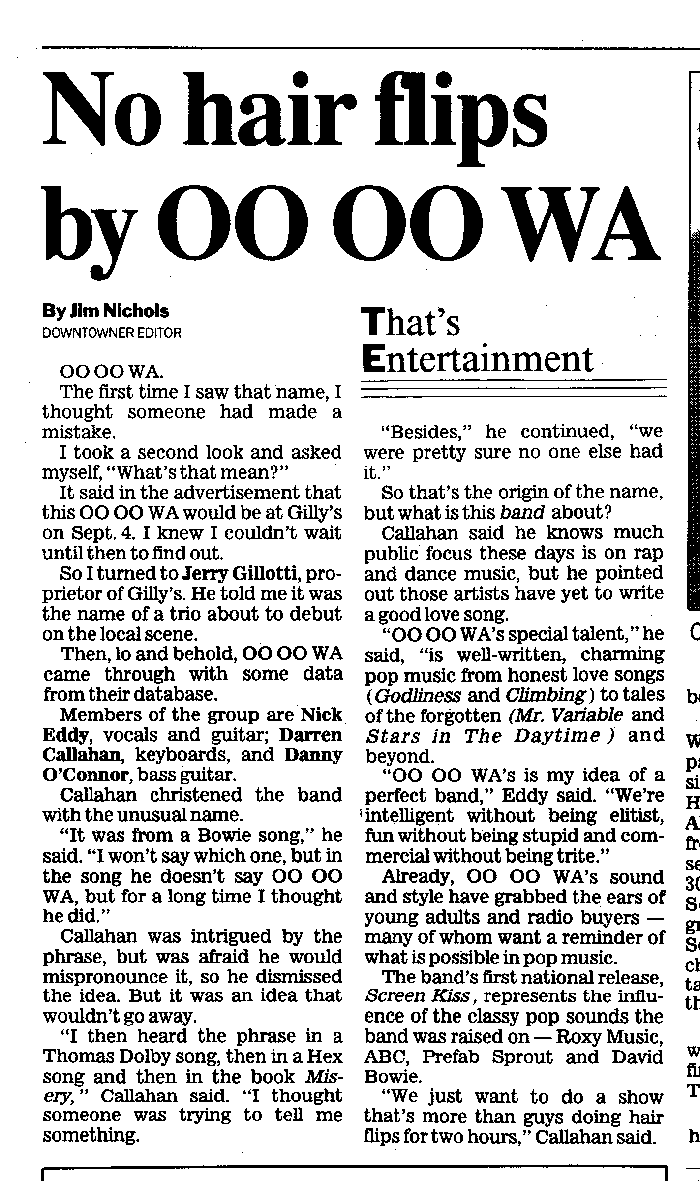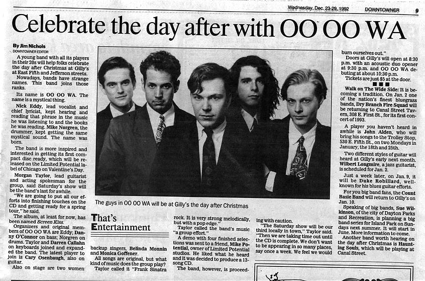 First press release DOWNTOWNER, 9/1/92 Show Poster, 9/4/92 DOWNTOWNER, 12/23/92 Dayton Daily News, 6/4/93
