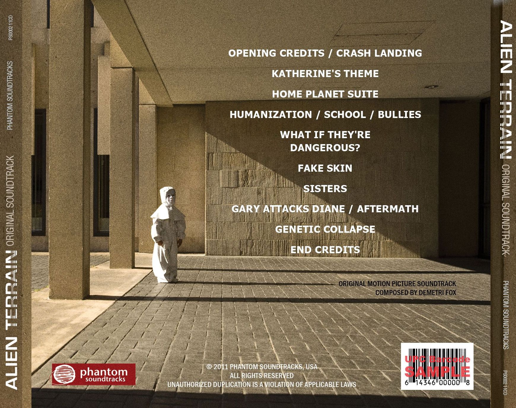 "OPENING CREDITS / CRASH LANDING " "KATHERINE'S THEME" "HOME PLANET SUITE" "HUMANIZATION / SCHOOL / BULLIES" "WHAT IF THEY'RE DANGEROUS?" "FAKE SKIN" "SISTERS" "GARY ATTACKS DIANE / AFTERMATH" "GENETIC COLLAPSE" "END CREDITS"